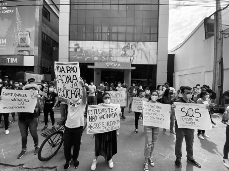 Estudantes da área da saúde fazem manifestação por vacina
