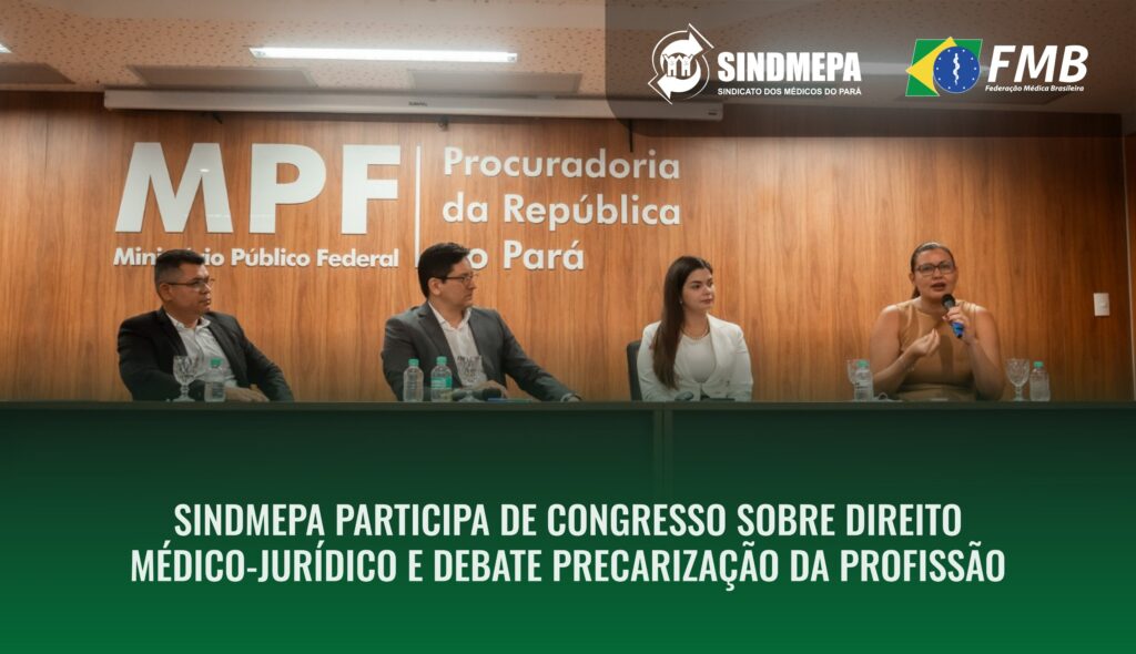 O Sindicato dos Médicos do Pará (Sindmepa) participou, nos dias 20 e 21 de agosto, do Congresso de Direito Médico-Jurídico promovido pelo Conselho de Medicina do Pará. O evento foi realizado no auditório do Ministério Público Federal (MPF), em Belém, e reuniu especialistas e entidades ligadas à saúde e ao direito para discutir os desafios da profissão médica.
