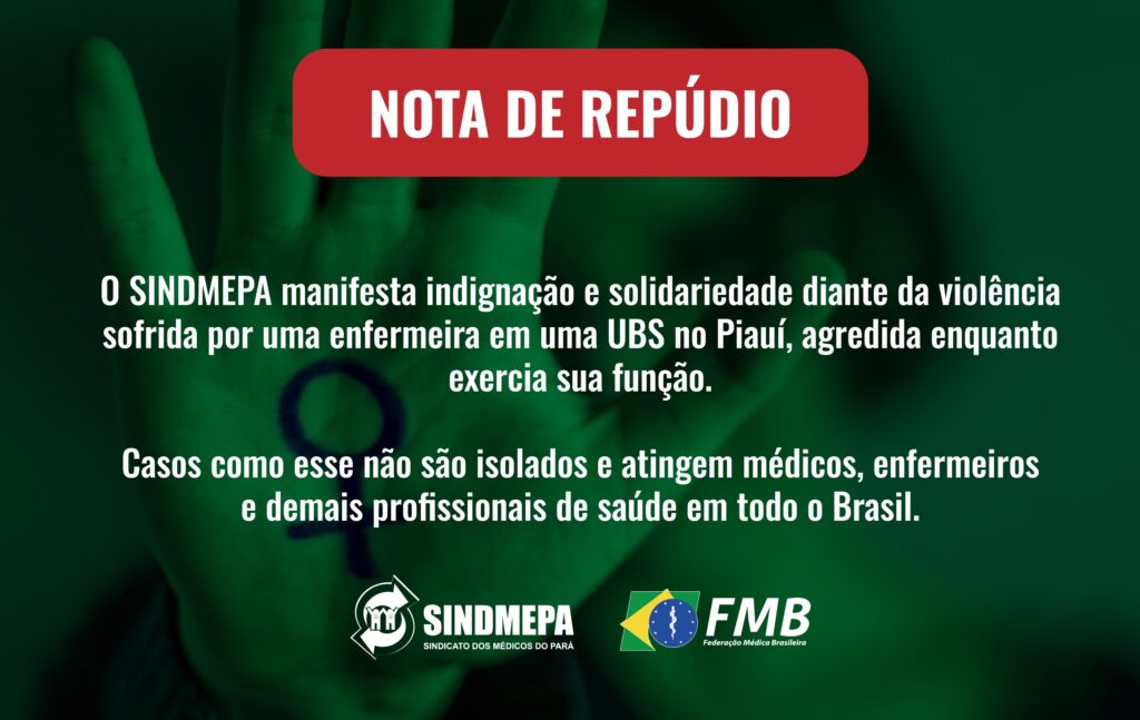 O Sindicato dos Médicos do Pará (SINDMEPA) manifesta profunda indignação e solidariedade diante do grave episódio de violência ocorrido recentemente em uma Unidade Básica de Saúde (UBS) no Piauí, onde uma enfermeira foi brutalmente agredida, sofrendo fraturas no rosto e na perna enquanto exercia suas funções.